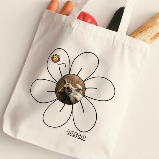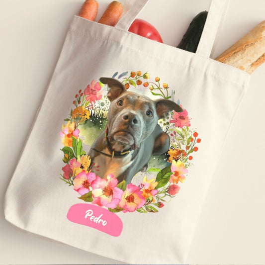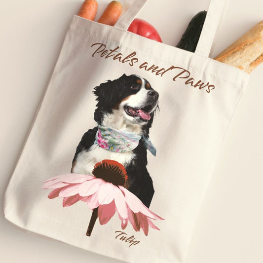 Personalized Tote Bag: Petals and Paws with Your Dog's Photo & Name
