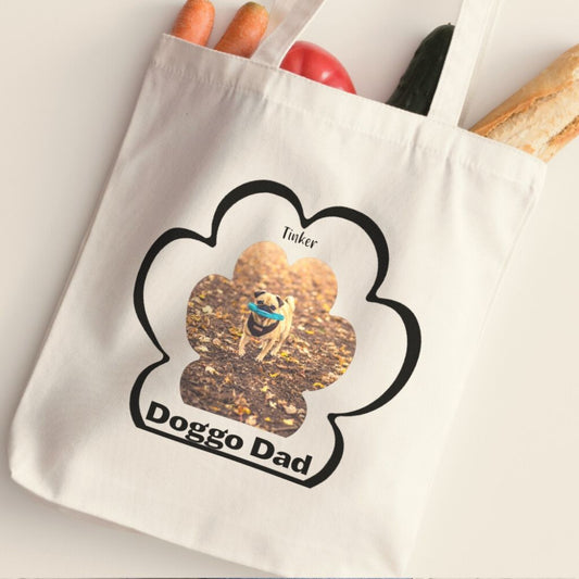 Personalized Tote Bag: Dog Dad Paw Print with Your Dog's Photo & Name