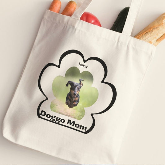 Personalized Tote Bag: Dog Mom Paw Print with Your Dog's Photo & Name