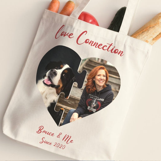 Personalized Tote Bag: Love Connection with 2 Photos & Names