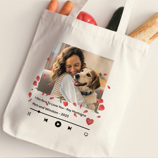 Personalized Tote Bag: Music Player Design with Your Dog's Photo or Yours Together
