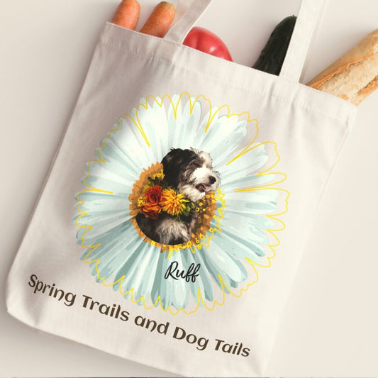 Personalized Tote Bag: Spring Trails and Dog Tails with Your Dog's Photo & Name