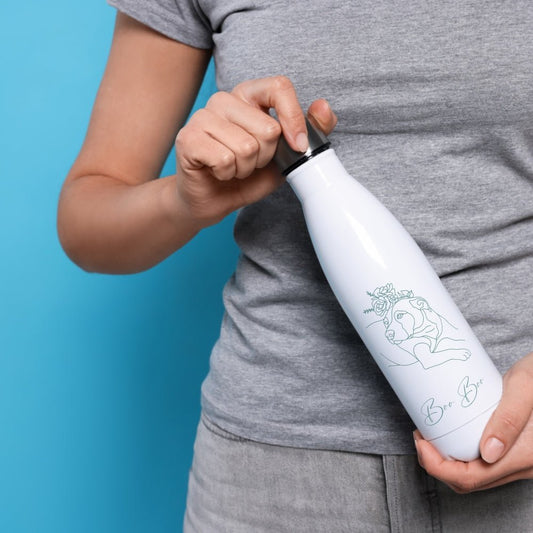 Personalized Stainless Steel Water Bottle: Minimal Line Art with Your Dog's Photo & Name